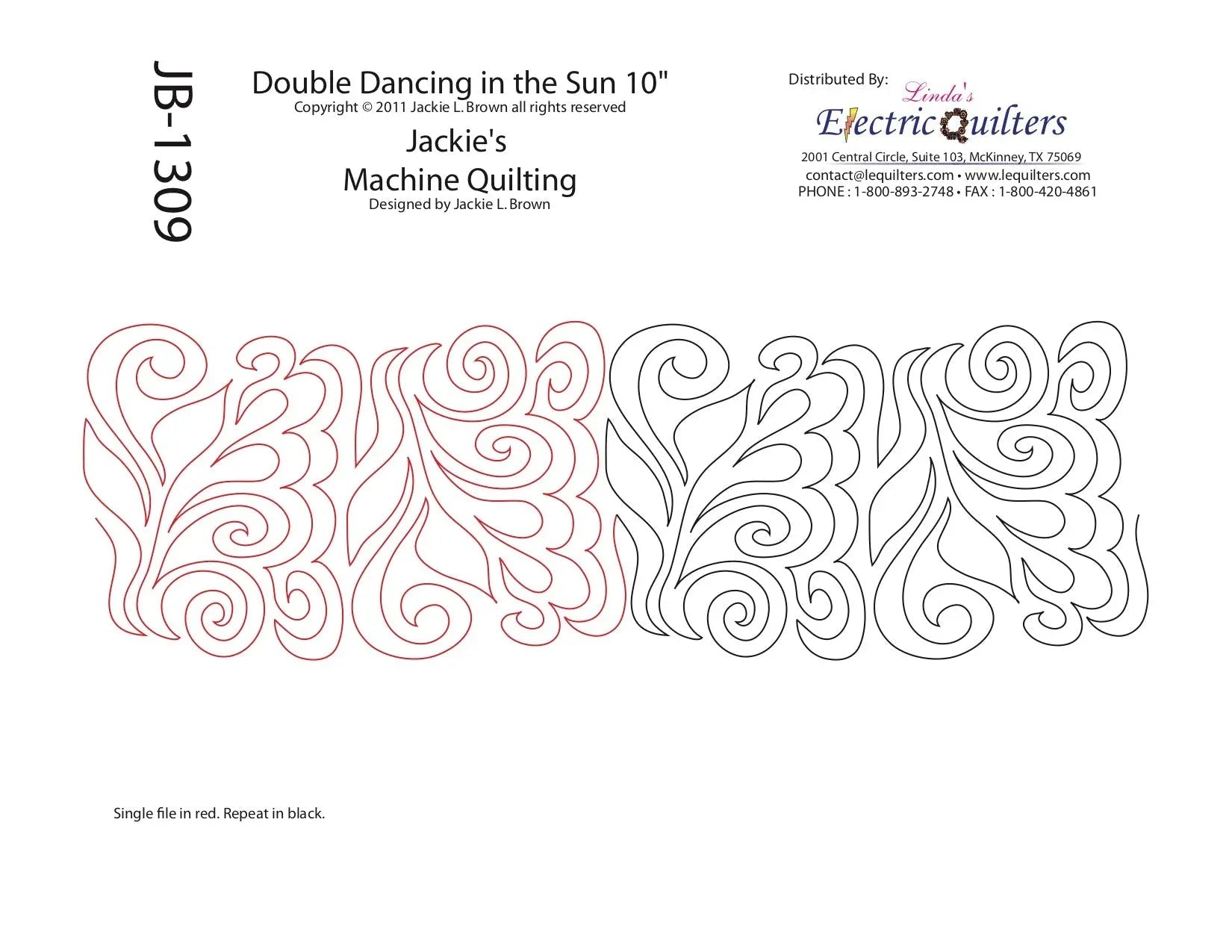 Beautiful continuous line pantograph pattern designed by Jackie Brown measures 121" long and comes with the following sizes.