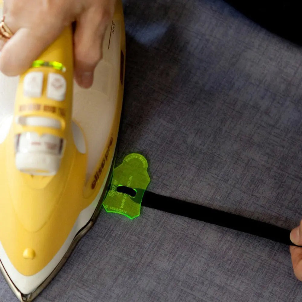 You will notice that the sides of the Sasher have a curved shape. This is so the curved edge of an iron can neatly fit against the Sasher as you push it along; Which means no more burnt fingers! Pauline recommends using the Mini Iron as it fits perfectly in the curve of the Sasher.