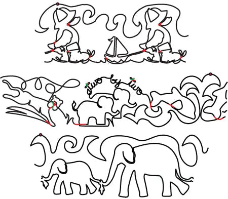 Beautiful continuous line pantograph patterns exclusively designed for mid-arm, short-arm and domestic machines. Each pattern on the roll is 7 inches wide and 3 different patterns come on each of the rolls.