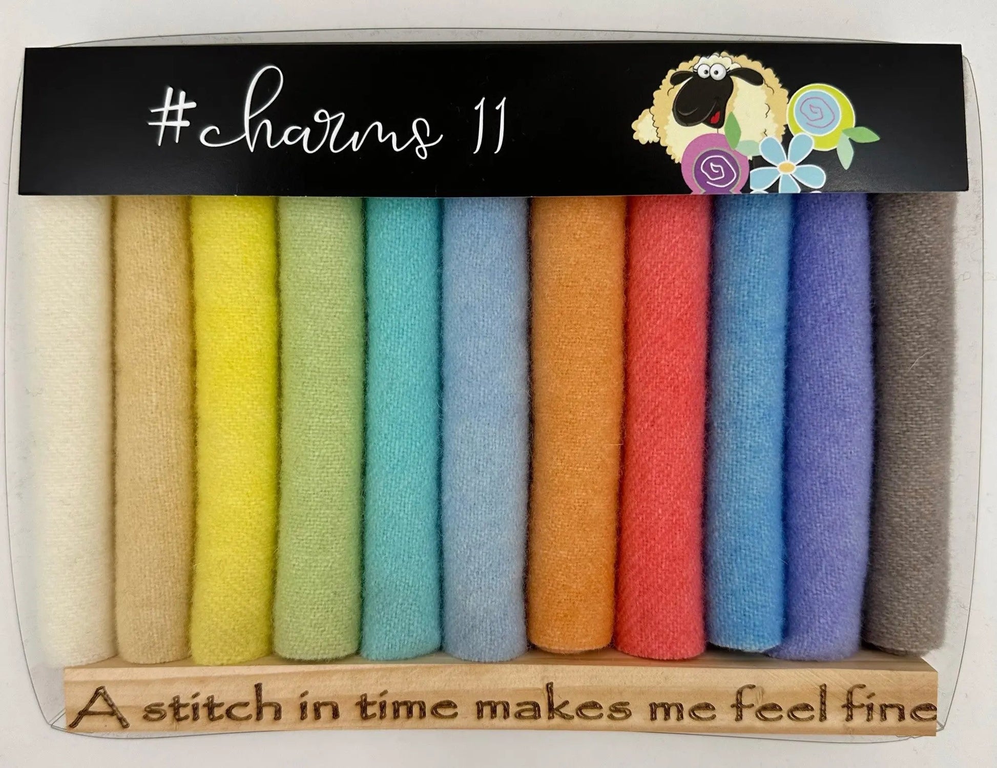 Our #Charms11 make the perfect gift for wool enthusiasts. The 11 Wooly Charms are packaged in a clear box with a laser engraved keepsake. Our hand-dyed wool is felted and ready for stitching! The rich and vibrant colors will enhance any project.