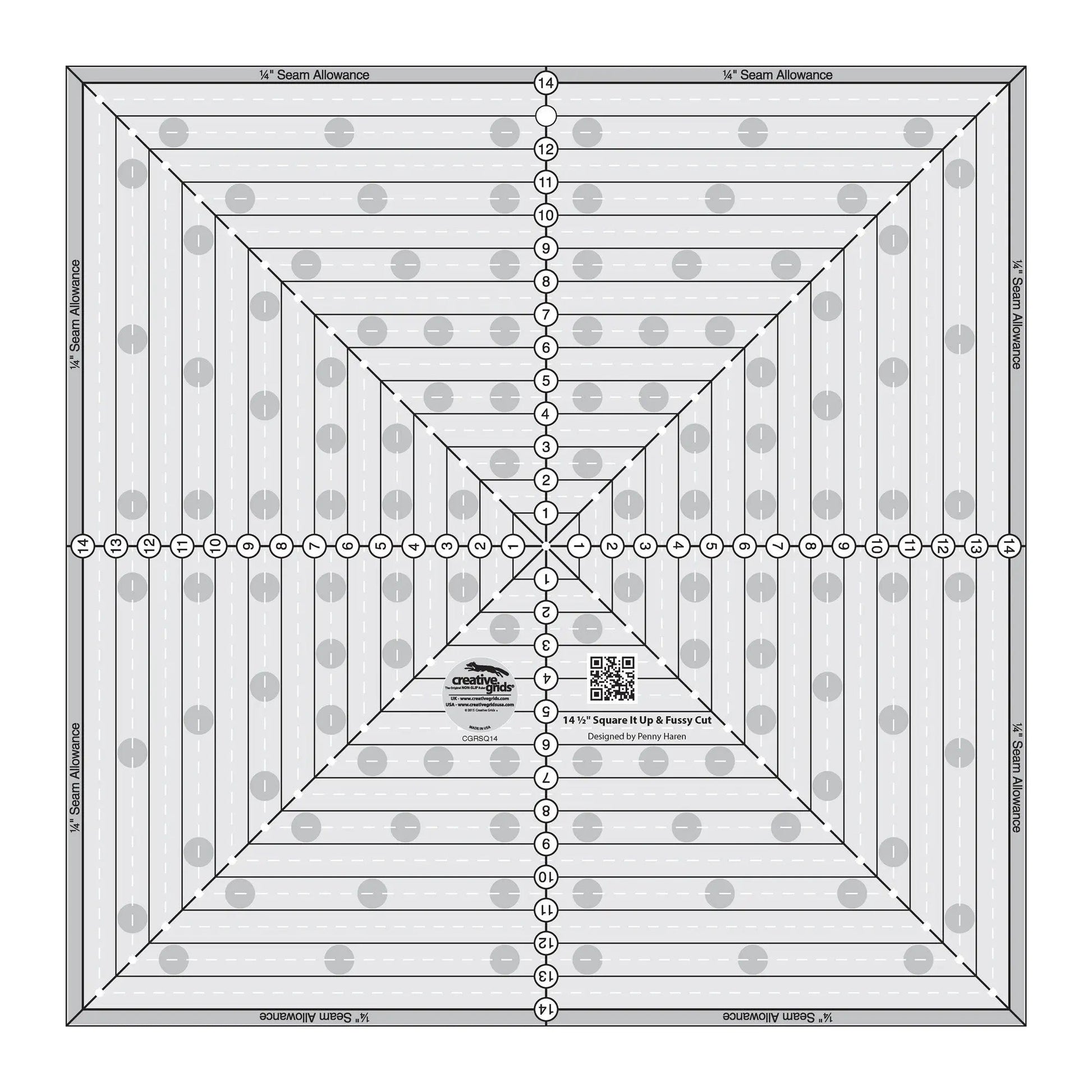 Creative Grids 14-1/2in Square It Up or Fussy Cut Square Quilt Ruler