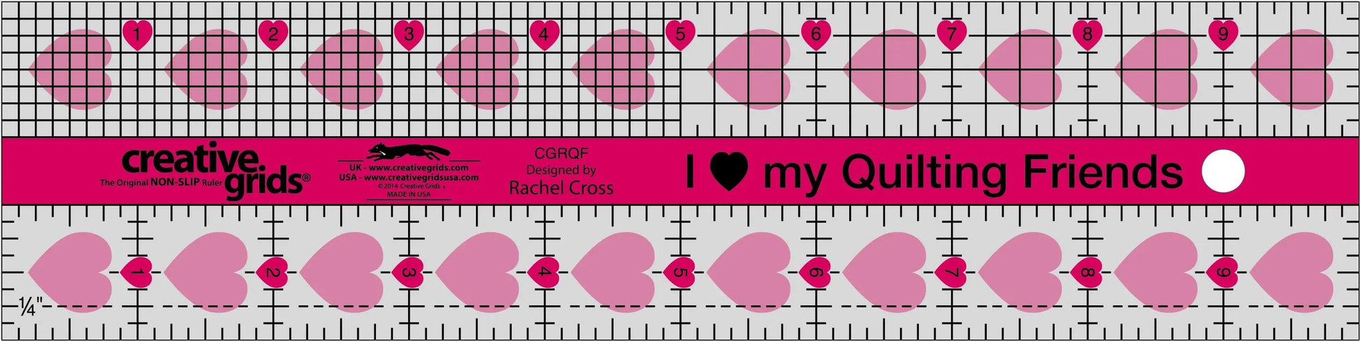 Creative Grids I Love My Quilt Friends Quilt Ruler 2-1/2in x 10in