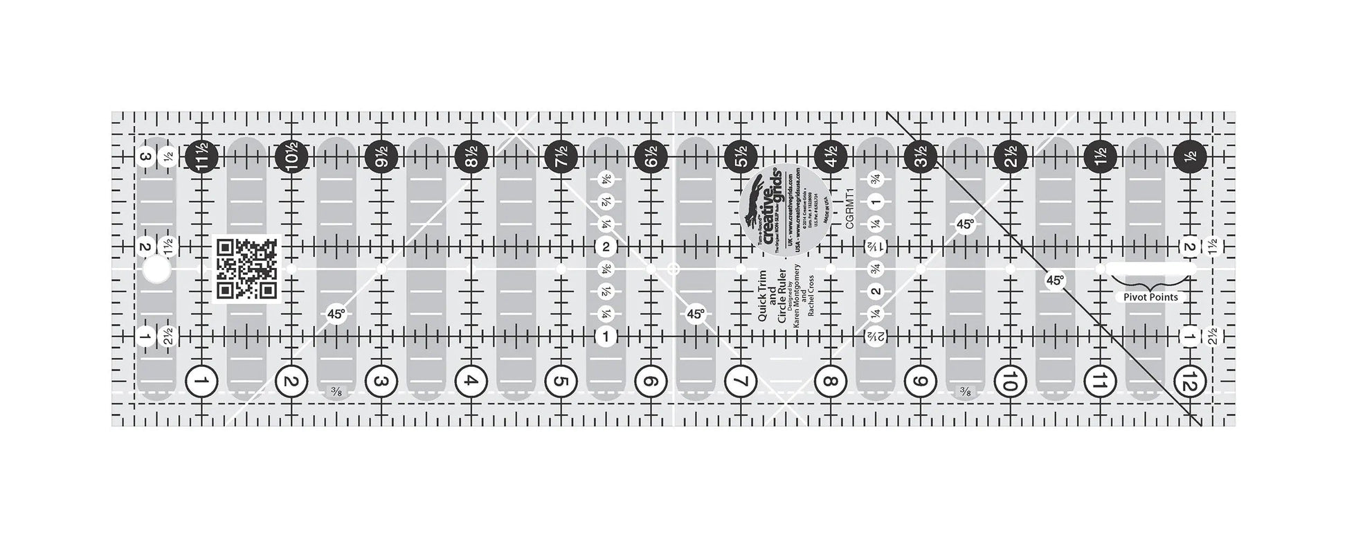* Includes our exclusive Turn-a-Round feature as well as all of the markings of a traditional Creative Grids® ruler.