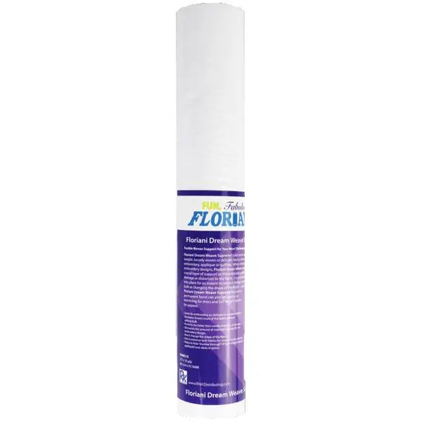 Floriani Dream Weave Supreme fusible adds extra support to light weight, loosely woven or delicate fabrics when embellishing with embroidery, appliqué, or quilting. When stitching dense or large embroidery designs, Floriani Dream Weave Supreme adds a crucial layer of support so the embroidery stitches will not cause damage or distortion to the fabric.