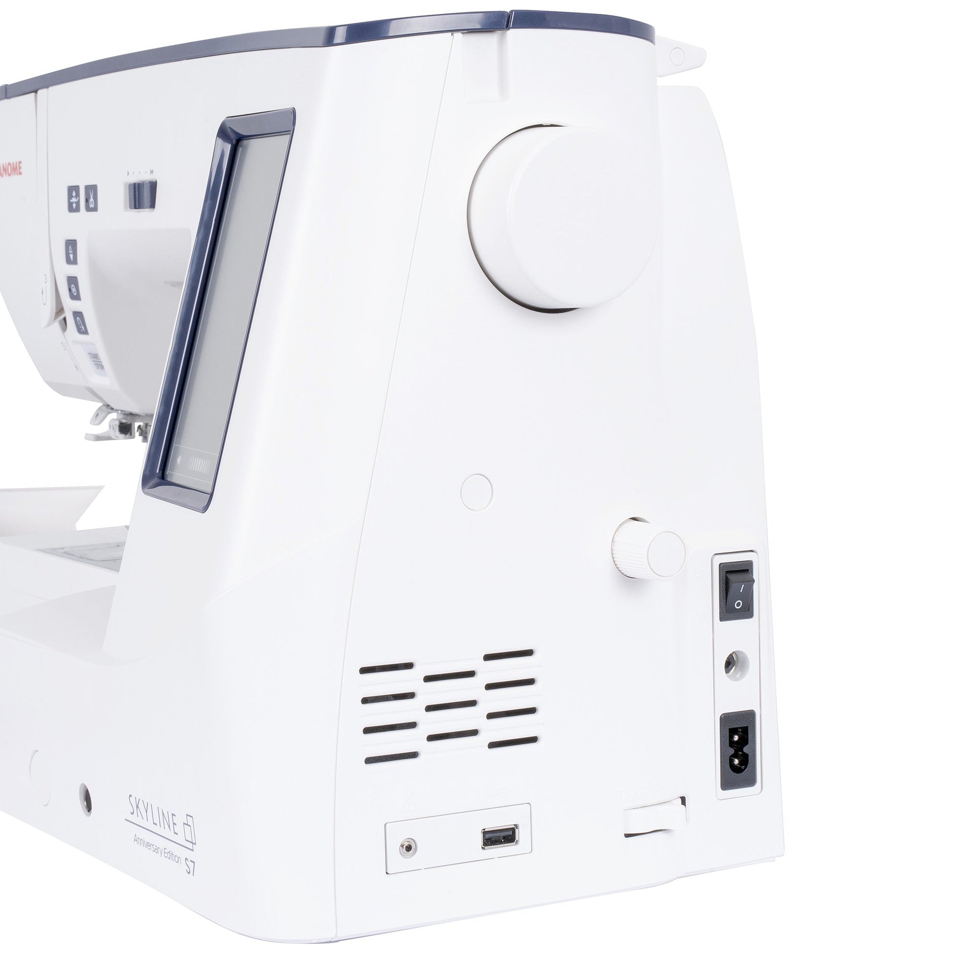 In addition to its extensive stitch library, the Janome Skyline S7 Anniversary Edition comes equipped with the AcuFeed Flex system, ensuring smooth and even fabric feeding, especially when working with multiple layers or thick fabrics. The machine also offers a maximum sewing speed of 1,000 stitches per minute, combined with a convenient speed control slider, giving sewists full control over their stitching pace. Enhanced by a touchscreen interface and bright LED lighting, the Skyline S7 Anniversary Edition offers both advanced functionality and ease of use, making it a perfect choice for creative sewing enthusiasts.