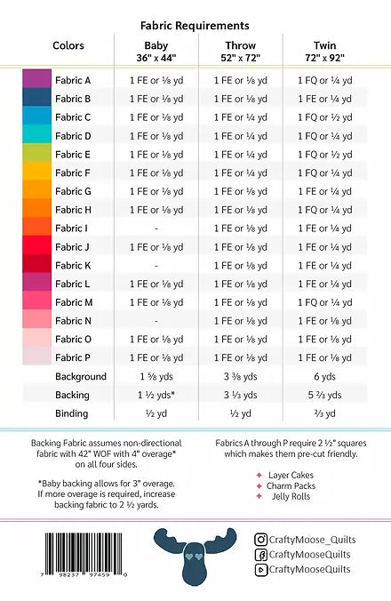 The Linden's Joy pattern allows you to quilt to your heart's content with either a baby size, throw size (shown on cover), or a twin size. Get scrappy or pick up that stack of Fat Quarters you've been saving for that special project.