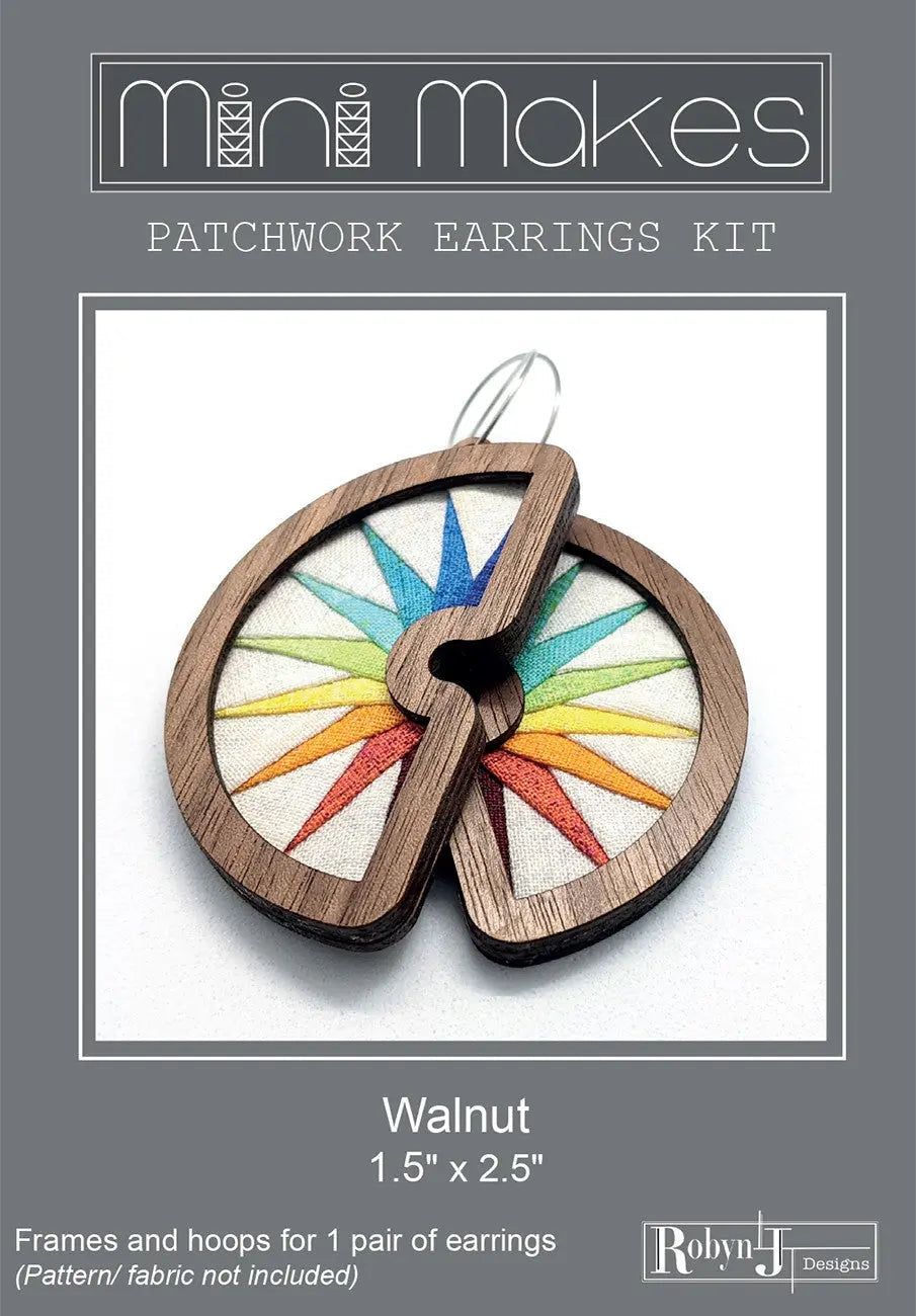 These patchwork earrings are the perfect accessory for every quilter. This frame-only kit is ideal for quilters who wish to design their own earrings. The possibilities are limitless- from miniature paper piecing to embroidery to adorable little appliques. Anything is possible! Each kit is made with an elegant laser-cut wooden frame, made from sustainably harvested walnut plywood.