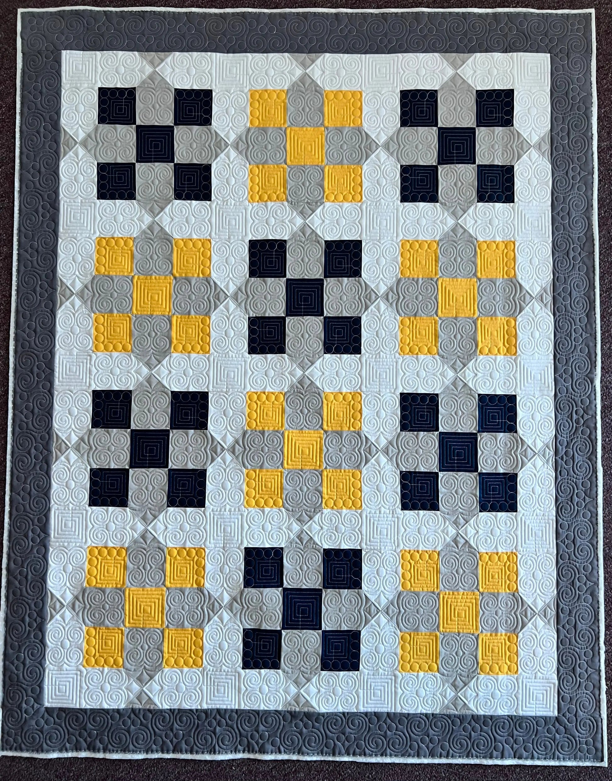Includes piecing instructions, digital patterns and digital quilting instructions in INNOVA AutoPilot M3 format. Digital instruction is for the AutoPilot M3 only. This is a really cute quilt that's quick and easy to piece. It is 45" X 57" and consists of 12 nine patch blocks and sashing that includes hourglass units.