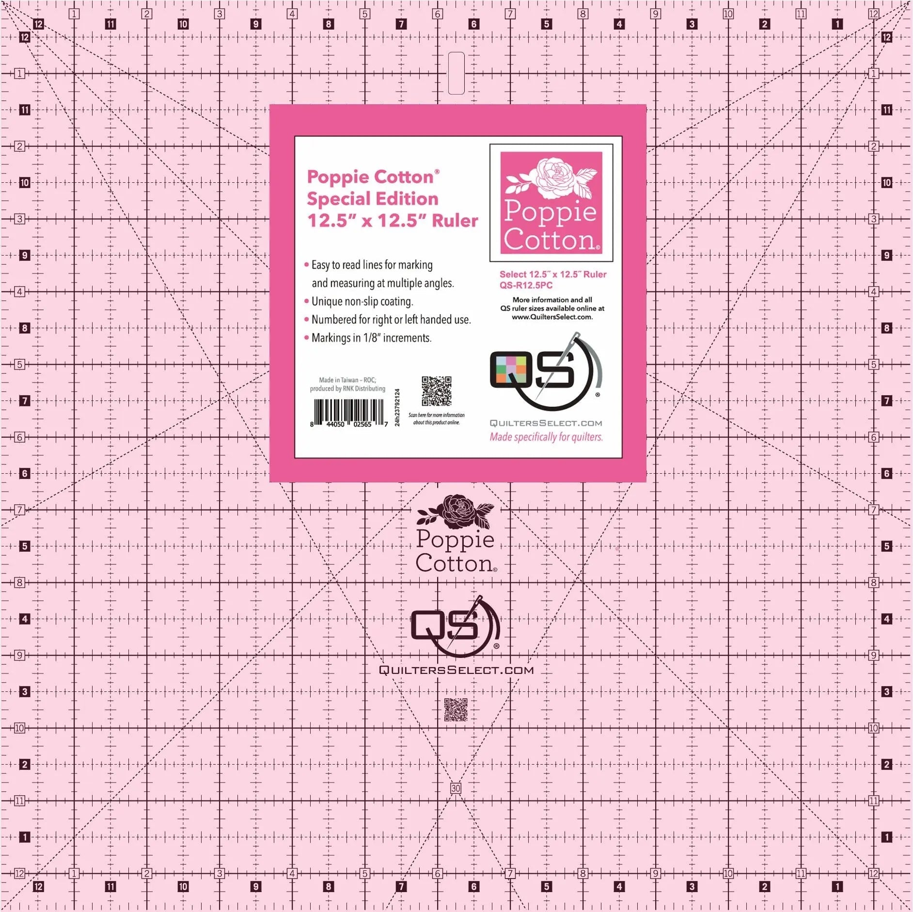 Quilters Select Poppie Cotton 12.5" x 12.5" Pink Non-Slip Ruler