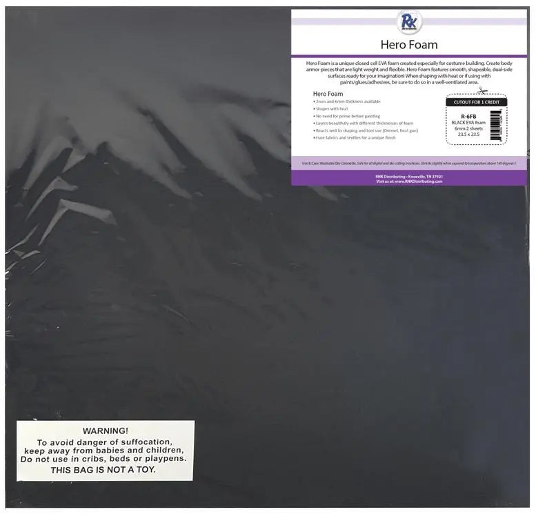 Unleash your creativity with the RNK Black Creative Foam! Each pack includes two 23.5" x 23.5" sheets of premium 6mm EVA foam, ideal for a wide range of crafting and DIY projects. Its durable, flexible, and lightweight properties make it perfect for creating custom designs, dimensional decorations, cosplay elements, and more. Easy to cut, shape, and glue, this versatile foam is a must-have for any crafter looking to bring bold ideas to life.