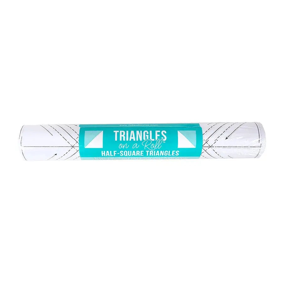 Makes 1,050 1.5in finished half square triangle blocks. Triangles on a Roll™ triangle paper allows you to create perfectly accurate half-square triangle units in any size and amount you need for your next quilt. Unroll and cut just what you need, then roll it back up for easy storage. Directions call for fabrics to be cut 10.25in wide.