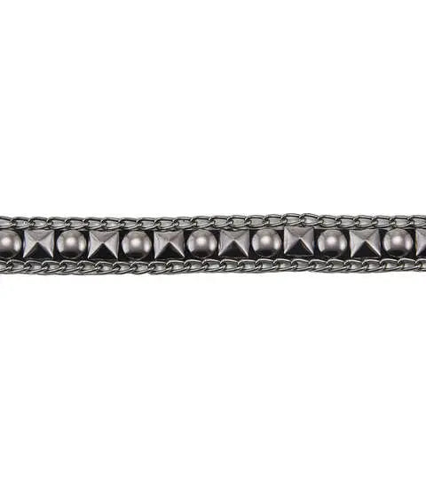 The Yaya Han Iron-on London Punk Trim-Silver is perfect for both modern and classic styled garments with punk, medieval, fantasy and steampunk designs. This iron-on studded trim can be also used for embellishing accessories or as a decorative belt.