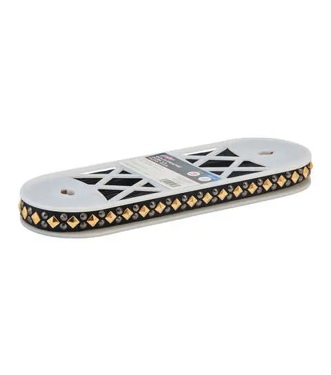 The Yaya Han Sew-on Dual LA Punk Trim-Gold & Pewter is just what you need to add detail and elegance to both modern and classic garments. Be it punk, medieval, fantasy or steampunk in design, your outfit is sure to stand out with this trim. You can also use it to embellish jewelry, separates, accessories and unique fashion items, and can be used as a decorative belt.